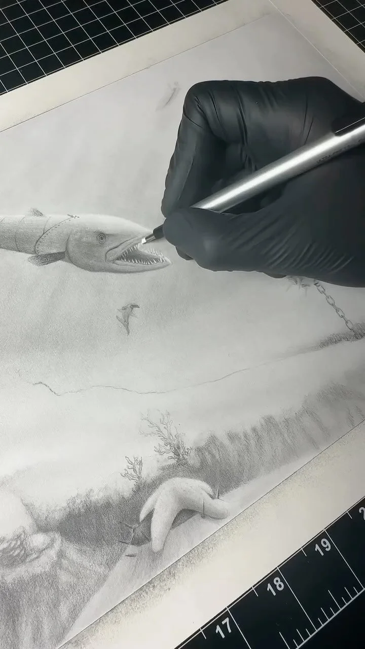 Graphite schematics from a world where animals evolved as deadly machines.