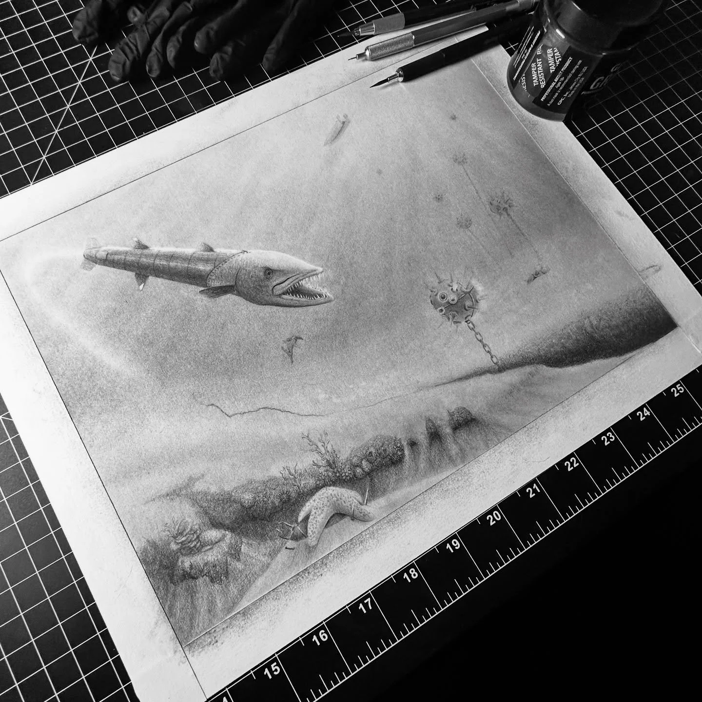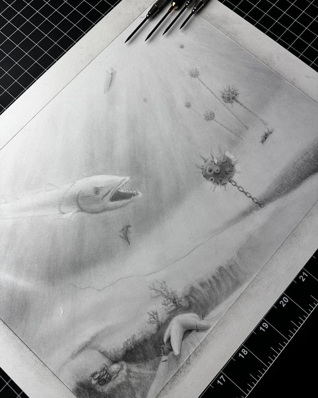 Graphite schematics from a world where animals evolved as deadly machines.